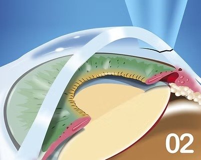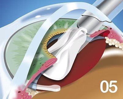 The IOL gently unfolds into the capsular bag, replacing the natural lens completely in its proper position